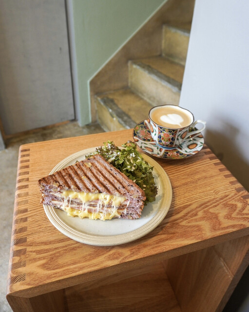 I originally thought it was a trendy café or dessert shop, but I found out through a review from an acquaintance that they also serve lunch. Moreover, they seem to offer quite unique dishes beyond typical café fare. I dropped by on a Sunday afternoon to check it out (^_^) The shop has a simple façade made of brick and glass. From the outside, it's a bit hard to tell what kind of shop it is. Inside, the first floor is a café space with face-to-face sales of sweets, and the second floor is an eat-in space with a counter for 6 people. While primarily a café, the lunch menu includes braised pork on rice, panini, and sandwiches with a unique mix of Taiwanese influences. The sweets include Basque cheesecake and Taiwanese castella, offering a tempting selection of delights. Since I visited for lunch, I ordered the braised pork on rice without hesitation, but it seems like a nice spot for café use as well. The staff are all stylish, and the customers who visit also have a chic vibe. In contrast, I'm just a middle-aged guy who's not very fashionable (^_^;)