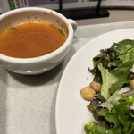 It was a healthy lunch with a good balance of vegetables, nuts, and rice. The dressing was delicious.