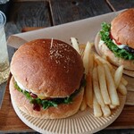 I have no experience with anything other than chain store hamburgers. Honestly, I thought the trend of oversized, Instagrammable burgers was just a fad. But when the burger arrived, it was almost the size of my face! How am I supposed to eat this?! But then I noticed they provided wrapping paper to prevent spillage, which was a relief. I took a big bite and... the bun was delicious. It was firm with a good chew, but not dry or tough. It had a dense texture that I liked (I'll say it again, I'm a beginner when it comes to burgers). The slight sweetness and strong chewiness created a great contrast. The meat inside was packed tightly and meaty, yet tender, which paired perfectly with the bun. And the fries were also delicious - thick, large, crispy... it was all so good! I feel bad for thinking it was just for show. When you're in the mood for a hearty burger, this place is perfect. Thank you for the meal!