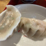 Anyway, I started eating. The salad was small but fair. There was a small dish of pickled mustard greens, and two water dumplings came with the meal. I wondered if I was supposed to eat them as they were or if there was a sauce, but I decided to try them plain. They were delicious! The dumplings were soft, and the filling inside was tasty. As for the soup, it was a bit thin. I realized it needed some seasoning like soy sauce, chili oil, or vinegar to enhance the flavor to my liking.