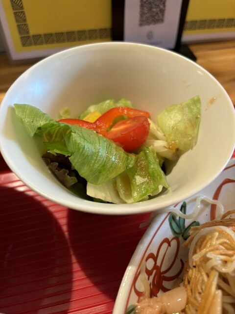 Today, I decided to order the 【Meat Sauce Fried Rice Set】 for 1300 yen. It took a little while for it to arrive. It seemed like there was only one person in the kitchen, and I thought it might be a good idea to train others in the front of the house to help out since some were just standing around looking idle. They didn’t mention where the chopsticks and napkins were, which were located under the table, so that could be improved.