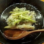 Today, I decided to challenge a cozy restaurant that my girlfriend has been interested in for about 2 years but has never been able to visit due to always being fully booked or reserved. The restaurant is located on the first floor in front of the Minamihiragishi subway station, but the sign of the second-floor Bibai Yakitori restaurant stands out, giving the impression of a quiet hidden gem. Peeking into the restaurant through the curtain gap, I saw customers but also some available seats, so I bravely entered the restaurant. The staff asked, "Do you have a reservation?" so I started to worry if it was fully booked. I replied, "No, I don't have a reservation, is it okay?" After confirming with the chef in the kitchen, I was led to a table and finally fulfilled my girlfriend's dream after 2 years! Looking at the menu brought to me, there was a wide variety of dishes and sake, with a focus on creative dishes and sake from Nara, known as the birthplace of Japanese sake. The creative dishes were mostly new experiences for me, so I struggled to decide on my order but ended up choosing some basic items. Before the beer arrived, we were served "Chawanmushi" as a complimentary dish. Tasting it, the dashi flavor complemented the sweetness of the egg nicely, with the umami of the shimeji mushrooms and clams being strong. After trying the chawanmushi, my anticipation for the upcoming dishes increased even more. The "Sashimi Assortment (1 serving/900 yen)" included mackerel, bluefin tuna, octopus, octopus, flatfish with karasumi, and grilled frosted saury, totaling 6 items. Not only were they fresh, but each ingredient's deliciousness was brought out satisfactorily. The "Fresh Cod Ponzu (1 serving/750 yen)" was creamy and paired perfectly with the ponzu sauce, which wasn't too sour. The "Rolled Omelette (600 yen)" was made with a soft texture and a gentle dashi flavor, similar to the chawanmushi. "Namero (650 yen)" is usually seasoned with miso, but this one was based on shiso, green onions, and myoga, with no fishy taste and a strong flavor of horse mackerel. I would love to eat this with white rice too. The "Deep-fried Cod with Tartar Sauce (750 yen)" had a crispy coating with a light texture and a fluffy cod. The homemade tartar sauce complemented it perfectly! It was so delicious that I wanted to take it home! Since the dishes were so delicious, we decided to order more! First, the "Fried Ginkgo Nuts from Aichi (550 yen)" were juicy and flavorful, with each nut being large and seasoned with salt, enhancing its sweetness. The "Cream Cheese in Soy Sauce (450 yen)" paired the richness of cheese with the savory soy sauce, a perfect side dish for rice. At the last order, as a finishing touch, the "Pasta with Green Pepper and Egg Yolk (880 yen)" was incredibly delicious. The rich and creamy egg yolk flavor combined with the flat pasta was amazing. The spiciness of the green pepper added a kick, making us finish it in no time. We started with "Suntory Premium Malt (550 yen)" to quench our thirst, and then enjoyed the recommended sake from Oily Sake Brewery. The "Kaze no Mori Yumachi 807 (120ml/770 yen)" was very fruity and easy to drink, with a dry taste profile. The "Kaze no Mori Dew Leaf Wind (120ml/700 yen)" had more sweetness than Yumachi 807 and a unique taste with a hint of acidity. It would pair well with richly flavored dishes.