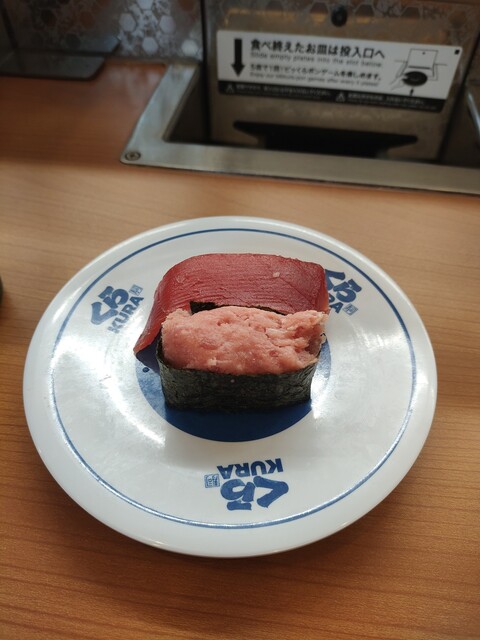 The recent visit to Kura Sushi Nishijin store, which has always left a good impression, was a bit disappointing this time. The quality of the premium tuna seemed to have decreased. The seaweed on the Tekkamaki was cracked, and there also seemed to be less tuna inside. As a result, the taste of the tuna has weakened. I can't help but think that this may be due to the influence of the "Mugen Kura Sushi" (unlimited Kura Sushi). While it is a convenient conveyor belt sushi restaurant, I may need to observe for a while before visiting again.