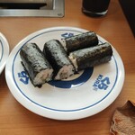 I went to try the discontinued menu "kitsune udon-style sushi" that was featured on Dare to Koko. It seems they used to have a limited-time menu like "doria-style chawanmushi" before. I had 3 plates and tiramisu, totaling ¥486. The kitsune udon-style sushi was difficult to eat. There was roasted seaweed on the plate, then sushi rice, and toppings, making it hard to pick up with chopsticks without tearing the seaweed. The taste was okay, but I'm not sure if I fully agree with it being a discontinued menu.