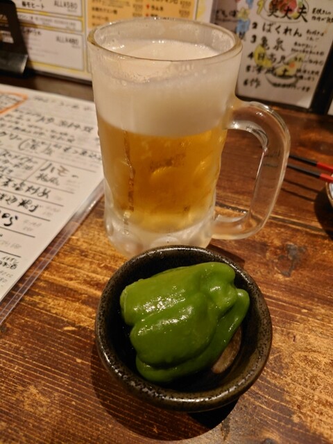 友人との飲みにて来訪。友人も前に来たということで今回この店を紹介していただいた。店内に入ると昔の駄菓子屋さんみたいないい雰囲気。このタイプの居酒屋は初めて!初めての来店のため店員さんが丁寧にお薦めや店の説明をしてくれたo(^o^)o これは好感触♪オーダの際にでんでん太鼓を使用するちょっと珍しい頼み方である。コロナ対策もしっかりしていて、店内にはいる前の検温や普通のおしぼりの他に殺菌効果の強いおしぼりを着席時にだしてくれる。とりあえず飲み放題を注文し最初は「男前ハイボール」をオーダー 乾杯しお通し。お通しはピーマンの丸焼き。中の種まで食べられるのがいい! 美味しい(*^-^*) そして注文をオーダー。オススメのかつをの塩タタキ、のどぐろフライを注文。かつをの塩タタキを薬味をつけて食べる。さっぱりして美味しい。そして新鮮。日本酒が進みそうなおつまみ。そのあと自分は蒸し牡蠣を注文。これも美味しい。で友人と一緒に日本酒「越乃景虎」を注文し、二人で飲む。つまみがなくなったので、炙りしめ鯖、鶏もも肉の藁焼きを注文。鯖も新鮮。鳥もジューシー(*^_^*)ただおつまみの種類が少ないので日本酒好きの方酒好きの方にはオススメだが、おつまみにこだわるのであればあまり向かないかもしれない。