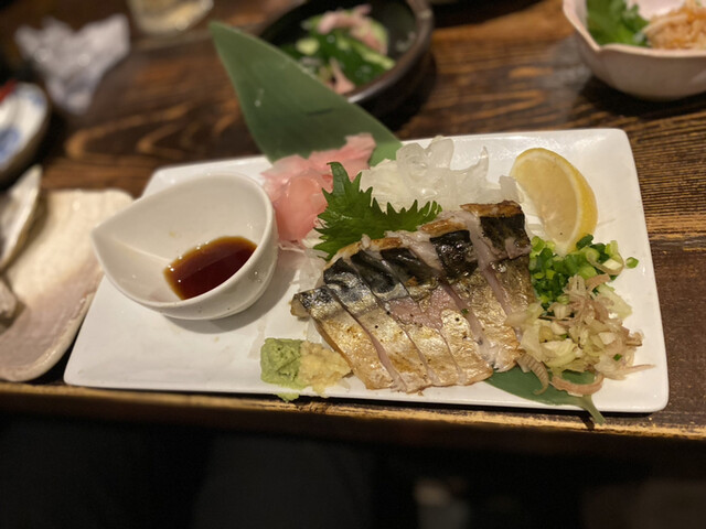 2022.12月下旬(月曜) 19時15分頃訪問。外看板メニューの日本酒銘柄がまぁまぁで、雰囲気の良い外観だったため、予約して来てみちゃいました。年の瀬の月曜日、混んでます!☆遅刻電話は食べログ、ぐるなび、ネット検索した3局ほどに掛けてみましたが、全く繋がらず(><)☆15分程遅れましたが、スタッフさんは全く気にしておらず。店内満席で忙しそうだし、多少の遅刻は構っていられないという感じでしょうかwwwオーダーしたもの ゎ‹ゎ‹(๑ ᷇ ᷆๑)♡ゎ‹ゎ‹・お通しのピーマンお出汁で煮てあるのかな*⸜(* ॑꒳ ॑* )⸝*ワンダホォォォォイ美味しかった♡和風で良し!・レモンサワーも、( ー̀֊ー́ )レモン絞ってます感あり!良き良き♡3つ絞ってくれてますね。・かつをの塩たたきレビューの評判に違わぬ美味さ。かつをのクセなくカットも厚みあり、藁の香りにハマりますね。ŧ‹”ŧ‹”( ‘ч’ )ŧ‹”ŧ‹” ほんと美味しかったぁ♡・炙り〆サバこれがまたタマラン!脂がのっていて☆+☆)/サイッコーおかわり級ですね!かつをと炙り〆サバで、酒の肴は十分満足( ¯﹀¯ )・生カキも臭みなく満足♡・キュウリと甘いガリ。コスパ良く美味しい。その他、オーダーものは満足、日本酒も美味い( ゚д゚)ンマッ!ここは混みます、実際混んでたし、その理由も分かった。魚も美味いし、サイコーなお店です。近場だったらリピート級の美味しさでした。ご馳走様でした( ´ ▽ ` )ノ