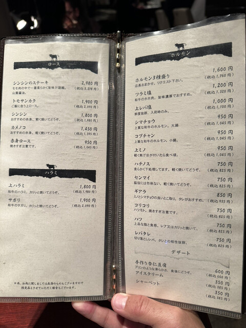 駒澤大学の駅から徒歩7,8分のところにある焼肉屋さん。10年以上前からある古いお店で存在は知っていましたがそんなに興味なくて今まで行ってなかったお店。友人がめちゃ通ってて美味しいとのことだったので試しに行ってきました。日曜日の夜に行きましたが8割くらいは席埋まってて当日予約でも行けるかいけないかの瀬戸際。平日ならいけそう。お店はまあまあ狭めでテーブル席20とカウンター4席。場所柄もあると思いますが家族連れがちょこちょこいました。家近い人じゃないとなかなか来ないところですもんね。アラカルト注文ですが、メニューがけっこうたくさんあります。内臓系に自信があるみたいでタンやハラミ、ホルモン系のメニューがたくさん。タンもタンサキからタン元タン下まで部位ごとに楽しめます。タンハラミを一通り食べてシマチョウも追加しました。肉質にかなりこだわっているので地元民に愛される街焼肉的なテイストにしては結構値段は高めですが相応の質です。都心で食べたらもうちょっとお値段も上がりそう。特にタンの質が良かったです。あとは一品料理のクオリティーが高かった。こっちょりっていう白菜の浅漬けキムチがシャクシャクで美味しかった。味付けもいい感じ。コムタンスープも美味でした。家近かったら定期的に来たいお店。でも近くない。むしろ遠い。