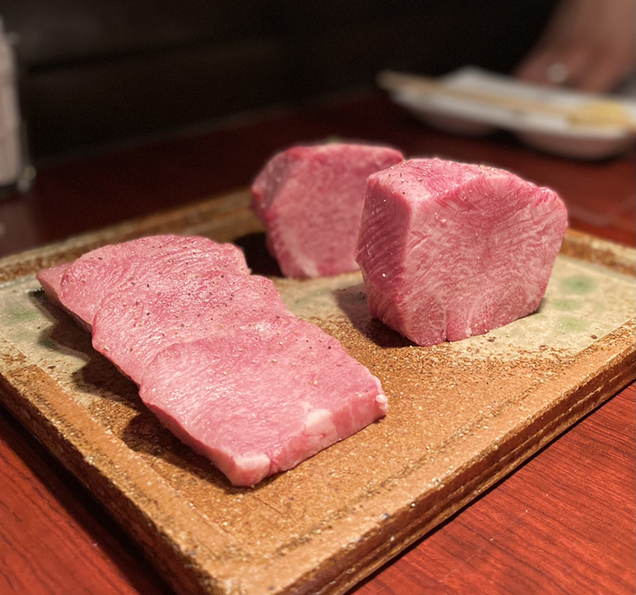 予算:1〜1.5万注文:アラカルト滞在時間:1.5〜2h予約:電話にて前回ほとんどモノが無かったので、常連の知人によるアテンドにてリベンジ。普段はお目にかかれないようなモノが多く、圧倒的な常連パワーを感じた。とはいえ取り置きしていないものについては欠品も多く、早めの来訪がベターだなと感じた。塊のタン、厚切りタン、薄切りタン、タンゲタをそれぞれのカットでいただいたが、個人的には厚切りが好みだった。極厚のタンはインパクトこそあるものの、所謂赤身のステーキ程ポテンシャルがあるかと言われると難しいかな。あとこだわりがあって下味の塩は打ってないとのことだが、塩を後付けするのが好みでないため、ベースの塩は打って欲しい。今回素晴らしいと感じたのはテール煮込み。ユッケジャン風の甘辛いスープで煮込まれたテールが絶妙で、ご飯何杯でも食べられそうだった。専門店でも戦えそう。タンは美味しいけど、特段感動とかは無し。正肉はシンシンが圧倒的な美味しさだった。文字通りシルクのような歯触りで、これだけずっと食べていたいと思うレベル。ミスジ、ハラミは可もなく不可もなく。ユッケは少し個性強めなので好み後分かれそう。タレよりもアボカドユッケの方が好きだった。シンプルなユッケでも良かったかなとも思う。1人13000くらいなので、やや高めかなという印象。また機会があれば伺います。【注文内容】・極厚タン・厚切りタン・薄切りタン・タンゲタ・ハラミ(タレ、塩)・ミスジ タレ・シンシン タレ・テール煮込み・ユッケ2種(塩、タレ)・浅漬けキムチ・トマトキムチ・コムタンスープ