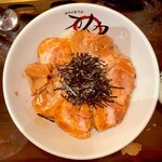 平日21:30。從入谷站走路不遠處的這家店。排了7組人的隊伍,感受到了這家店的人氣,但15分鐘後進店時,我後面卻沒有人排隊。看來我的時機選擇得很差。這家店提供多種收費和免費的配料,可以進行無數的組合。我只點了收費的半熟蛋,並且只享用桌上的配料。份量我選擇了「萬人盛」。麵條是煮得軟一些的中細麵。我無視了店裡的規矩,先把麵條沾滿了底部積聚的醬汁,咬下一口。這是以醬油為基礎的標準口味,味道比較濃郁。然後,我根據食用方式,灑上辣椒油和醋,調和了味道,再加上蛋增添了香滑感。我不斷地加入芝麻、大蒜粉、胡椒和萬人辣椒,不斷地改變口味。這份量我輕鬆地吃完了,所以即使是兆人盛也應該能輕鬆應付。另外,收費的明太子也看起來很有趣味呢。
