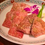 切り落とし套餐2,300日元,再加上短冊牛舌700日元。即使是切落的肉也很好吃。醬汁真是美味。