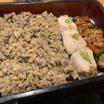 預約了午餐並造訪了餐廳。受到新冠疫情的影響,酒店內部空蕩蕩的,連一樓的洗手間都禁止使用。這家餐廳位於地下,人流稀少,感覺有些孤寂。毫無預料的是,這是兩年來的首次造訪。這麼長的時間間隔實屬罕見。在上班的時候,我記得大概是每兩個月去一次的頻率。那時候總是座無虛席,熱鬧非凡,但這一次只有一組預約。總共也只有我們三組客人,這在以前是難以想像的情況。可惡的新冠病毒!我們點的菜大多數是「雞肉鬆重」(含稅1980日元),再加上另外一道菜「肉丸」(含稅536日元),還有餐後另外點了一杯咖啡(500日元)。價格有點高,但是這家餐廳的肉丸,是一種有骨頭的韌韌的口感,這種美味是我30年前第一次在伊勢廣集團(雖然這家不完全算是伊勢廣集團)的京橋本店或帝劇店品嚐到的。鬆重裡面包含了「雞鬆」、「雞胸肉」、「雞腿肉、蔥、青椒」。單點肉丸是因為如果加進鬆重裡,那麼鬆重裡的雞鬆就會減少。這是小市民的聰明做法…。我喜歡在上面撒上大量的辣椒粉吃。微微的辣味很美味。雞湯也很好喝。撒上花椒更加美味。其他還有「大根絲沙拉」,配菜有「蘿蔔和泡菜」。這些都是吃鬆重時間的休息,扮演了很好的角色。這次可能是因為烤得有點過了,所以無論是丸子還是雞腿肉都有點硬,而且肉本身的味道也有些淡。前幾天我在另一家烤雞店聽說受到新冠疫情的影響,好的雞肉變得難以進貨,這家店可能也受到了類似的影響吧…。雖然這次的午餐有些奢侈,但是可以安靜地享用美食,所以這家餐廳還是很實用。