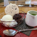 一直以來都很想來的岡田屋,終於來了☆ 妻子點了水果甜酒草莓550日元,我則點了幸福的白玉露500日元。水果甜酒草莓讓人驚訝地稀薄,味道淡淡的。而幸福的白玉露是一杯裝著白玉露的杯子,頂上放著商店賣的小雪見大福,但太小了幾乎沒有任何意義。當我嘗試從溫暖的白玉露轉向冷凍的雪見大福時,它已經溶化消失在雲端了。只剩下令人感到心情愉悅的濃郁白玉露(´;ω;`),真的只有讓人感到心情愉悅(´;ω;`) 很可惜。謝謝款待☆