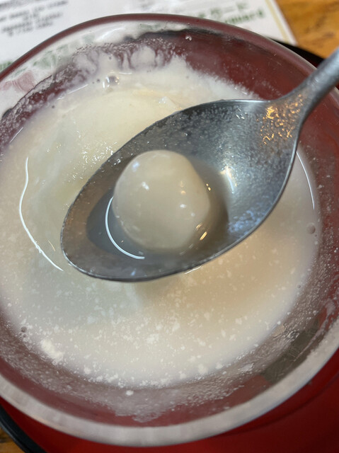 北海道產的大福豆白餡為基底,添加了「牧家」的新鮮牛乳,這款白色的湯圓湯一直讓我很好奇。我非常喜歡白餡。在溫泉小鎮漫步時,我也喜歡古老的建築。雖然這家店快要關門了,但他們很熱情地接待了我。這碗溫暖的白色湯圓湯,當然是溫暖的。白餡的濃稠感讓我感覺更溫暖。牛乳的溫和和意外地搭配得很好。吃得很滿意。