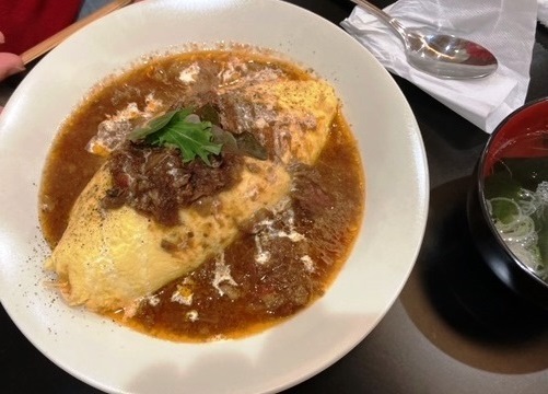 這附近的午餐我還未嘗試過,所以來了這家推廣博多牛的燒烤店。我是個從未嘗試過獨自享用燒烤的新手,但如果是吃蛋包飯,我就不怕進入燒烤店了。意外的是,也有女性獨自一人坐在吧台上,我也找了個位置,點了蛋包飯。點餐時,他們給了我少一點的份量。很快就上來了沙拉和湯。因為我是在午休時間來的上班族,能馬上吃到東西對我來說是挺開心的……。然後蛋包飯來了。哇,太美味了!湛藍的脂肪在上浮的番茄醬,光滑無瑕的蛋,還有在最頂端平衡得絕妙的肉塊〜〜〜!蛋不是鬆軟的,而是煮得很熟的那種。但是蛋的層次很厚,感覺很蓬鬆。裡面的番茄醬飯還有很多香菇和洋蔥,吃起來很有嚼勁,而且蛋不是鬆軟的,肉卻很鬆軟!哈哈這個,要是在◯ム的樹吃,應該要價約 2,000 日圓吧……真的是正宗的蛋包飯,太好吃了。謝謝款待〜。