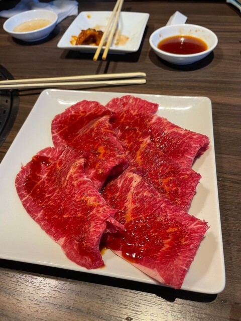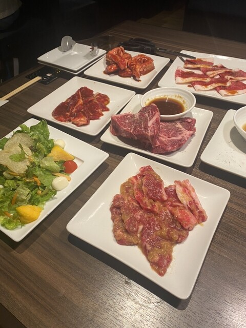 這天我們在梅田享用了燒烤。找了一家自助餐店,選擇了這家提供高品質牛肉套餐的店。店鋪位於阪急梅田站直達的17樓,非常便利。從窗戶看夜景很美,店內也整潔漂亮,與普通的燒肉店有所不同。接下來就是點餐了。我們選擇了國產牛吃到飽套餐,價格為3,980日圓。雖然有無限暢飲的選項,但為了專心享用肉品,我們只單點了啤酒。馬上點了各種不同部位的肉品,龍肋排和牛腩都很美味。至於甜點每人只能點一份,但份量十足,色彩繽紛,很漂亮。吃了很多肉,品嚐了美味的甜點,欣賞了夜景(HEP摩天輪看起來很美),與朋友度過了愉快的時光!比起網上的燒肉,這裡稍微貴一點,但是更值得。如果在北摂也開一家就太好了...。謝謝款待!☆