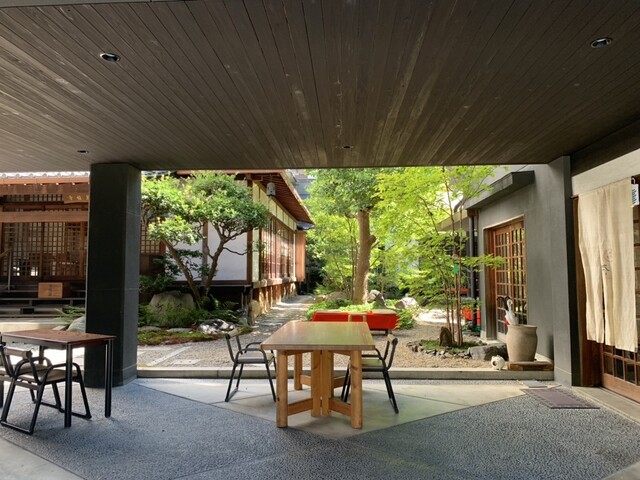 這家餐廳有著寺廟的氛圍,讓人感到放鬆舒適。不論是庭院還是室內都很適合。