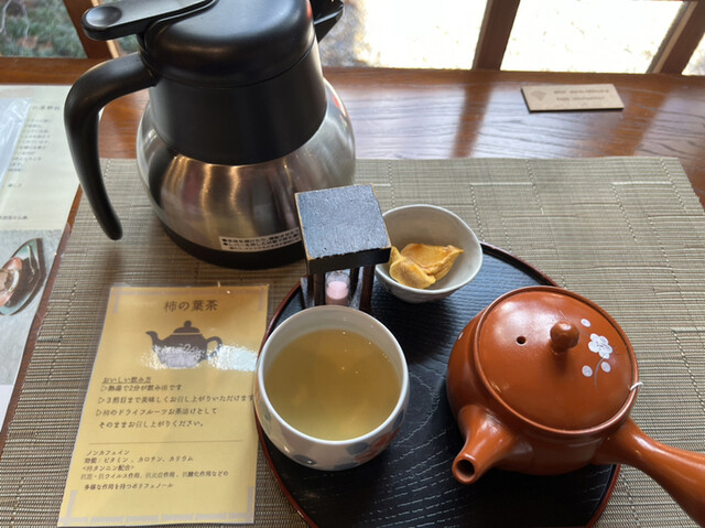 堀江公園南側的萬福寺境內有一家名為【寺カフェ 茶庭】的咖啡館,每週週三、週四、週五會開放。在右手邊的店內點餐和結帳後,可找一個空位坐下。店內的空間因座位位置而有不同的景色。坐在外面的露台上,一邊欣賞庭園一邊悠閒地品茶也是不錯的選擇❤︎如果你有喜歡的座位,可以告訴店裡的人員,如果那裡有空位的話可以移過去。這次我點了◆柿葉茶 700日圓,無咖啡因,含有維生素、胡蘿蔔素、鉀和柿鞣質,具有抗菌、抗病毒、抗炎症、抗氧化等多種作用的多酚茶。店員會仔細地教你如何泡茶❤︎將熱水倒進急須中,泡2分鐘,當砂漏的沙子全部滴落時即為喝茶的時機。據說茶葉可泡至第三泡仍然美味可口。柿葉茶的香氣讓人感到愉悅〜❤︎茶點是柿乾,自然的甜味十分美味♫我的伴侶點了冰的蕎麥茶拿鐵 700日圓,配上油炸麻糬。質樸的甜味十分美味〜這裡的氛圍非常舒適,令人不想離開(〃ω〃)店裡還提供毛毯,所以在寒冷的日子裡,你可以一邊暖和著腳一邊在庭園中享受愜意,忘卻都市的喧囂,並被庭園中隨季節變化的花草所治癒〜+゚。*(*´∀`*)*。゚+美味可口,謝謝款待☆