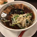 今天是我的假日!雖然通常都是連假,但明天要上班了!要去整形外科接受腰部復健和藥物治療!然後去拜訪家裡的老人,就結束了!午餐時間到了呢!看了食べログ的評論,決定去之前就一直想嘗試的拉麵店和家人一起去!以前非常受歡迎,在道內有幾家分店!有一天我注意到它們都關閉了!但據說江別還有一家?從札幌的家開車到江別,沿著國道12號走!經過江別的永旺店後,在左邊!家人是守望者!「找到了!」然後家人又說「關門了?是定休日嗎?」我感到失望!家人說「你沒確認過定休日嗎?下次再來吧!」我說「是的!」偏離主題了!抵達後,發現江別的永旺停車場爆滿!連觀光巴士都停滿了!我們就去了一家我們還沒去過的中國菜館!進去後,有人熱情地迎接我們!謝謝!店內比外觀看起來要寬敞!比外觀更乾淨!(對不起!)點餐後,我點了「豬腳醬油拉麵」,820日圓含稅!家人點了「担々麵套餐」,980日圓含稅!外觀上,我的拉麵有切碎的蔥、豆芽、菠菜、木耳和兩塊(很大的)豬腳!吃完後,我的豬腳醬油拉麵,豬腳很大塊很好吃!非常棒!麵條像札幌拉麵的風格?湯普通!家人的担々麵套餐,我試了一口酸菜,非常好吃!能販售嗎?謝謝款待!