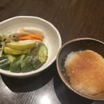 預算:13000日元任選菜單 糠漬沙拉 - 串燒(含有檸檬風味,有點粗糙的質感) - 砂肝(較小塊) - 蔥白 - 獅子唐辣椒 - 雞胸肉(燒得醃香) - 厚豆腐 - 手羽中(易食用) - 骰子牛尾肉(彈牙但不油膩) - 玉米 - 鵪鶉肉(肉質較柔軟) - 鶉蛋 - 胸脂肪(肉質稍硬) - 銀杏 - 粉腸尾(下半部的肉質較厚實,可能是不同的部位) - 椎茸(忘了說我不喜歡) - 手羽皮(醬汁味道美味) - 脊骨肉(較大塊,我喜歡的部位) - 炸馬鈴薯(味道不太濃) - 牛腸 - 青蒜苗 - ペコロス(不屬於套餐) - 牛碎肉丼飯,湯頭濃郁,份量足夠一人食用完 - 起司(高達普通份量,有時稍大) 首先,價格太高了!我覺得。雖然是按照套餐內容收費,但吃過所有串之後,店家就會停止服務。雖然料理口味還不錯,但如果價格能降到一萬日元以下就更好了。如果能自己選擇喜歡的串燒店就更好了,因為我不喜歡蔬菜串燒,也有些鳥肉串燒不喜歡。