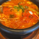 秋葉原UDX的燒肉店。單點燒肉從1000日元起,選擇燒肉套餐1550日元,可以搭配酸辣豆腐湯、拌飯、冷面或牛雜拉麵。我點了稍微奢侈一點的酸辣豆腐湯和牛排燒肉套餐,結果得到的酸辣豆腐湯份量意外的多,而且還有小菜和泡菜,讓我感到驚訝且飽足。牛排也是相當好吃的肉質。
