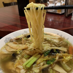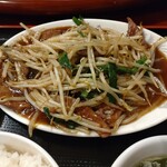 初次光臨。星期五下午1點。毫不等待地被引導至共座的桌子。猶豫了一下是要選擇肝炒洋蔥還是五目炒麵,最後決定了五目炒麵!!午餐附半份炒飯只要980日圓。麵稍微有些焦,但炒得剛好,與白菜、海老、魷魚、豬肉、鵪鶉蛋、木耳、竹筍等多種配料,淋上中國醬油底的醬汁,味道相互交融,非常美味。炒飯還可以吧。兩者都稍微有點化學調味料的味道。共座的大叔點的五目拉麵看起來比我點的更美味,是只有我有這樣的感覺嗎。杏仁豆腐是現成品。吃完後口感清爽^ ^ 謝謝款待^ ^