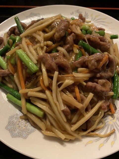 周日午餐時間再次造訪。這家中華料理店因其被媒體報導過的餃子而聞名。附近有增上寺,週末特別熱鬧。名副其實的餃子確實美味,但我個人不太喜歡到可以一再光顧,反而更喜歡牛肉和蒜苗的炒菜。因此,這次點了牛肉和蒜苗炒麵。牛肉的柔軟和蒜苗的脆爽口感形成了美妙的對比。食材的份量也很足夠,讓人感到滿足。另外,如果一個人用餐,很有可能會跟其他客人共享圓桌。