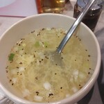 辛みそ肉あんかけチャーハンをオーダーチャーハンにスープが付いてくるスープはチャーハンができる前に出てくるスープの量は多くて感じたスープ中身は千切りした人参と千切りした寒天チャーハンのパラパラしていて餡と共に美味しかった。盛り付ける器がザラザラしてるのが気になります。厨房付近は煙りが立ち込めてので気にする人は厨房から離れた席に座るといいでしょう。