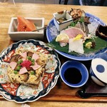 星期日中午我前去过这家餐厅。店内客人满座,但我很幸运地没有等待便入座了。【氛围】这里的氛围宛如传统料亭,非常有格调。有座位区和桌子区,非常宽敞。【菜品】我点了丹后定食套餐,含有各种刺身拼盘和招牌的ばらずし,价格为2350日元。前菜有章鱼和一道芝麻豆腐。它们看起来很精致,味道也很美味,让人兴奋不已。刺身盛合包括白肉、海螺和鱿鱼等,非常豪华。白肉非常新鲜,口感弹嫩,味道一流。ばらずし里还包括了鱼杂饭。鱼的鲜美与蛋的柔滑和香菇的美味相结合,非常美味。这绝对是一道招牌美食,让人回味无穷,令人上瘾。招牌ばらずし当然也非常美味,这是一家可以品尝到季节感和新鲜刺身的名店。我肯定会再次光顾的。