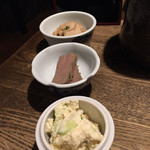 我之前听别人说这家餐厅很好吃,所以特地前来尝试。我们在先斗町寻找晚餐,一开始担心因为太受欢迎可能进不去,所以路过了一次。但后来还是决定回来问问,结果还是有空位,可能是因为疫情的原因。服务员的态度还不错。他们推荐了白味噌火锅和山药饼,我试了一下,味道非常好!但是酢もつ(牛杂烧)和煮玉子牛すじ煮込み(煮牛筋)的味道相对较淡,不知道是不是我的错觉?说实话,它们的味道有点淡,有点令人失望。配菜里的葱有点干燥,可能因此没有新鲜感。而且牛すじ煮込み和酢もつ的肉质都有点干。总体来说,我觉得它们不是很好吃。还有,第一道上来的小菜盘子看起来很乱,好像是随意涂抹上去的,而且里面装的东西很多,让人感觉不太整洁。不过,味道还不错。至于牛舌和烤葱,牛舌有点硬,咀嚼起来有点累。烤葱很甜,味道还不错。我特别期待的山药饼,虽然撒上的芝麻粉看起来不太美观,但味道非常好。因为期望太高,所以感觉有点失望...可能不会再来了,抱歉。