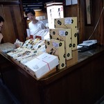 都内也可以买到,但因为住宿地附近有分店,所以我第一次去了总店。总店的氛围很有意思,购买产品在那里感觉很好。快要打烊时,很安静。以前我经常在百货公司地下或者展销会上买,但是碰巧在附近的总店买到了。我买了几个小袋子作为伴手礼,不够用又再次买了几个。可以保存很久,作为京都的伴手礼很有名,而且方便易买到,很方便呢。