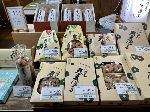 今天,我在前往京都市政厅的路上顺便去了一家荞麦面店。 **河道屋(かわみやち)** 这是一家有着传统京都町屋风格的店铺。这是一家自江户时代以来传承下来的老店,主要销售“生面”和烘焙点心“蕎麦ほうる”。店内陈列着各种不同尺寸的“蕎麦ほうる”。 我购买了一个适合单人食用的90克装“蕎麦ほうる”。我立刻将其当作零食品尝。根据附带的说明,这是一种使用荞麦制成,采用南蛮点心的制作方法的烘焙点心。它们被烘烤得金黄酥脆。有“花”的形状和“芽”形状的两种类型。口感类似曲奇饼干。咀嚼时,散发出丰富的香气,非常美味!我觉得这是我自从小时候收到别人送的土特产以来第一次品尝到这种味道。我觉得这是一种适合所有年龄段的美味点心,甚至孩子也会喜欢。