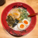 去了两家酒吧,最后来一杯。后辈请客了。咦?这么美味吗?味道相当浓郁,稍微浓一点,高菜也搭配得很好。我差点忘了把它当成半饭来吃,但我很满意这碗拉面。