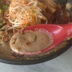 这次我第一次点了半份拉面。我想要品味汤汁直到最后,所以我点了小份,不要吃饱。这个汤汁似乎也适合搭配饭,但可惜可能吃不完。还有他们的招牌肉丸饭也因为同样的原因我最近放弃了。现在来谈谈这碗拉面的味道,辣味我能想象到,但是和鱼粉的搭配非常棒。这真是个发现。下次还会点半份的♪
