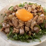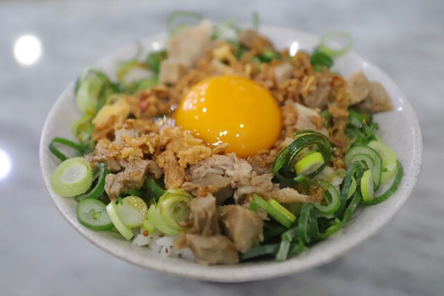 我终于来到了之前看到其他人的帖子后一直想去的这家店。大约11:30到达了店里。没有等待的人,买了食券后立即被引导到座位上。虽然菜单上有很多想吃的,但是因为是第一次来,所以选择了以『彻底的鸡』为基础的特制(全加)和『肉玉丼』。浓稠的汤汁拉面是我第一次尝试,非常美味。叉烧也很嫩,后悔没有点大份的。肉玉丼里有切碎的叉烧、炸洋葱、葱等,不搅拌的话吃起来很脆爽,但混合了蛋一起吃口感会有些变化,也很美味。拉面和丼饭都很美味,非常满意♪饭后可以选择冷茶、热茶、冰茶,我选择了冰茶。虽然顾客络绎不绝,店员的服务也让人感觉很好,非常棒。谢谢款待。