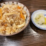我和妻子在周末的午餐时间来到了这家餐厅。京都非常炎热。餐厅内座无虚席,我们在外面等候。不久后被引导到座位上。餐厅内非常凉爽。脑海中响起了"打首獄門同好会"的歌曲。我们点了两份乌冬面定食B(改成了荞麦面)980日元✕2份大份量(每份250日元)和一份甜嫩狐(190日元),总计2400日元。我本想吃些冷面类的食物,但价格相当高。如果在外面点餐,我可能会点冷面,但餐厅内非常凉爽。所以,我想或许点大份量或单点会更合适。定食980日元的价格点大份量需要额外250日元,感觉有点贵。不过,大份量的乌冬面真的非常丰盛,加250日元也不算贵。汤汁稍微偏甜,很美味,与面条搭配得很好。炸物有点硬,但味道鲜美。可食用的蔬菜炒饭味道平淡,有点干。可能是因为在外面出汗太多,味觉有些减弱。豆腐沙拉凉爽爽口,非常美味。在夏天,在有空调的房间里吃乌冬面有一种不正当感觉,但也因此更美味。就像在冬天坐在炬火桌旁吃冰淇淋一样。非常美味,感谢款待。我们还会再来的。