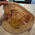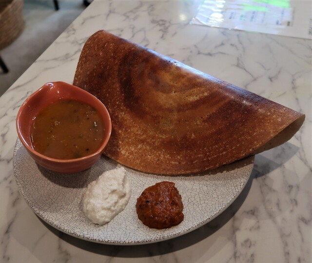 初次访问 202302(No.4271) 1. 访店目的:在京都旅行的最后一天早上享用早餐。 2. 店铺信息: - 食评网上的分类:印度料理、印度咖喱、咖啡馆、茶馆(其他)。 - 开业日期:2012年1月11日。 - 食评网2022年亚洲和民族美食百佳店铺之一。 - 营业时间:08:00~10:00、11:30~15:30。 - 休息日:星期一、星期日。 - 座位数:18个座位。 - 仅在星期五和星期六提供当地摊位和餐厅的早餐。 - 当天早上店内大约有2-3成客人。 - 店内感觉比较陈旧,光线较暗。 4. 服务:按照标准服务。 5. 订购的食物: - 马萨拉多萨套餐,价格1,250日元。 - 订购后大约10分钟,上菜了。菜品与南印度咖啡一同上桌。南印度薄饼非常热腾腾,是新烤的。这家店在京都的印度餐厅中享有很高的评价,所以我非常享受这顿美味的早餐。感谢款待!