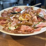 每次经过这家店时,我都会想着排队真是不容易,真了不起,虽然最近对拉面没什么兴趣,但我一直想去尝试。最近因为有人推荐,而且最近重新开始品尝拉面,所以我已经做好了平日排队的准备,提前20分钟到达店门口!!我是第一个顾客( ´ω`;)我点了两种不同口味的面条,一起分享★出汤荞麦面,加味玉★淡淡的荞麦面。两者都有着浓郁且顺滑的汤汁。出汤荞麦面有柴鱼和两种酱油的汤汁,汤汁味道好极了!!淡淡的荞麦面有蛤蜊和甜虾的汤汁,虽然海鲜味不是很浓,但也很美味(*´꒳`*)底部有脆生洋葱,没有苦味,非常美味。两种面条的汤汁都非常美味!!只是面条可能是普通的宽度??对于一个拉面新手来说,我无法确定...但总之,汤汁的味道和这个价格令我非常惊讶!!无论如何,因为总是有人在排队,所以我感到有点不好意思,我必须尽快吃完( ˆ꒳ˆ; )谢谢美味的一餐!