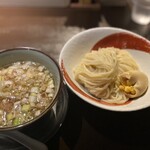 我选择了最受欢迎的特色豚拌面。特色拌面除了有叉烧,还有海苔、味玉和贝割。特别推荐贝割,你可以在座位上额外点贝割,这次我又加了更多贝割,因为时屋的汤非常浓郁,而清爽的贝割与之相得益彰。我认为它是为了一直享受汤而必不可少的配料。 面条有点嚼劲,是中粗面条,拌汁非常热,因此面条的硬度似乎是为了考虑到这一点。 然后是绝对不能泡的关键汤汁,非常浓郁,不是咸味,而是浓郁的美味。猪肉和海鲜的美味充分展现在汤中,因为汤太浓了,所以不要将整碗面都泡在汤中,否则后半部分就没有汤了。 面条上的叉烧相当厚,但如果变凉就会变硬,所以建议先吃掉。但我个人认为,将它浸泡在热乎乎的拌汁中加热食用也是一个不错的选择。此外,除了面条上的叉烧,拌汁中还有一块块柔软的猪肉,大小相当可观。 最后是拌面附带的出汁饭,用来收尾。将拌面的汤倒在出汁饭上,出汁饭以出汁和梅干的味道为特点,清爽可口。 总之,这是一家即使需要排队也值得一试的超浓郁拌面店,时屋的拌面非常美味,感谢招待。