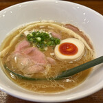 因为附近的住宿被评价很高,所以前来拜访。虽然是午餐时间,我以为会排队,但却没有排队,很快就进入了店内。店内只有吧台座位,周末可能会比较拥挤。我点了午餐限定的高级鸡汤面和鲑鱼饭。汤汁充满了鸡肉的美味,但并不太浓,更偏向清淡和优雅的鸡肉拉面,适合第二天消化。面条是自家制的,光滑有嚼劲的直面条,非常美味。鲑鱼饭也很美味,整体来说,这家餐厅制作非常用心。