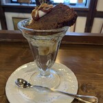 焦糖巧克力冰激凌杯(1265日元)。外面等待大约4人等待10分钟左右。这是一家受到注册有形文化财产保护的场所,拥有古老木制家具,提供宁静的氛围。吊灯的柔和光线非常温馨舒适。这里非常适合约会(实际上有很多情侣)。现在说说冰激凌杯,苹果布丁的甜度和巧克力的微苦味非常美味。我真的想再次光顾。