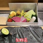 这家位于北新地的雜居樓潛伏在城市角落,擁有深厚的店鋪風格。它可能受益於米其林指南的影響,吸引了不少外國遊客。餐廳提供英語服務,點評者原本對串炸食物有些疲倦,認為它們可能會沉重,但這家餐廳的餐點給了他們全新的印象。餐點多樣,供應的菜品包括: - 季節時蔬 - 芝麻醬汁的魚子醬慕斯 - 幼鮎 - 鵪鶉蛋 - 鱼 - 小龙虾 - 马铃薯 - 牛沙拉 - 白蘆筍 - 鱼寿司 - 海膽 - 牛肉涮鍋 - 咖喱 - 海苔茶泡飯 - 甜味糯米团子和軟雪糕 首先上桌的是一道時蔬拼盤,份量十分充足,足夠供應整頓晚餐,同時也為整頓晚餐提供了清新的口感。串炸食物的連續吃讓人覺得不沉重,非常美味。串炸食物美味無比,而涮鍋和咖喱等不同種類的菜品也帶來了視覺和味覺的享受。
