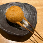 这家餐厅是根据伙伴的请求而选择的,主打菜是炸串。以前一直想来但未能光顾的地方。从名字来看,没有想到会是充满和风氛围的外观。内部装修宁静雅致。开胃的蔬菜和像蓬松蛋白一样的酱料。从一开始就有虾!只有赞叹(笑)。大厨的用心体现在吧台上,串炸得恰到好处,正好在适当的时机上桌。从经典到一些独特的品种,尽情享受。我一定会再来的。谢谢款待。