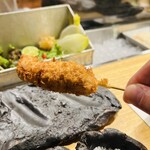 这是位于北新地的著名串揚げ屋。店内有一个宽敞的吧台,共有16个座位,还有一个可容纳8人的包房,隔壁建筑物内还有一个可容纳6人的VIP包房,非常豪华。大师曾经在北新地的川与山的有名店工作,据说在开店时继承了大部分技艺。串揚げ是创意系的,虾、鹌鹑、牛串是这家店的招牌。这里不像高档餐厅,更像家庭式的氛围,员工都非常友善,笑容满面,所以即使是第一次来也可以放心(≧∀≦)确实,这里的鹌鹑串非常美味,偏向于半熟,非常符合口味呢。饮料种类也很丰富,如果告诉大师你的喜好,说不定还能尝到意想不到的好酒哦~总之,非常感谢这顿美味的餐点!※告诉他们我看过“オガログ”!听说会有特别待遇哦~诚意推荐尝试套餐,菜单包括:前菜、生菜拼盘、芝麻酱炸物、虾炸物、1分45秒水煮鹌鹑、牛柳炸物、鳕鱼、山形的秋葵汤、鲭鱼的汤炸物、马铃薯牛油炸物、香川的白芦笋、别名火箭锅、炖牛肉饭、汉堡咖喱饭、海苔出汁茶泡饭。