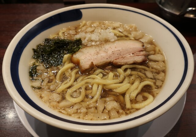 这家餐厅位于JR淡路站附近,是100家著名餐厅之一。这里供应罕见的盐味煮干拉面。我在平日的12:30左右来过,所以做好了排队的准备,但出乎意料地很快就入座了。汤比普通的煮干酱油拉面更突出煮干本身的味道,有一种浓烈的味道,令人想要一口气喝掉。面条是煮得很热的细面条。面条本身也很好吃,但煮的程度恰到好处,似乎完全理解了原材料的最佳状态。配料很简单,有叉烧肉块、切碎的洋葱和海苔。虽然色彩不丰富,但每种配料的味道都非常出色,叉烧肉非常美味,与《人类共食面》中的叉烧肉块毫不逊色,非常嫩滑。洋葱也很甜,很搭配拉面。只是价格稍微有点高,而且距离阪急淡路站有一段距离,所以不是适合每个人的选择。但如果你愿意为了品尝美味的拉面多付一些钱,那么值得一试。