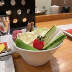 我一直想去尝试这家餐厅,但由于我是#あーぼん 的粉丝,所以一直犹豫不决。这是我第一次来访( ー̀֊ー́ )⋆☽︎︎·̩͙*̩̩͙⸝⋆我选择了定制套餐,价格为9,200日元▫️包括20种创意串,车海老,牛肉,带子,豌豆饼,烤猪肉,木苏菜,鱼子鸭豆腐,蕨菜,酢味噌,小黄鱼,合鸭,豆腐,山菜,酢味噌,小蘑菇,嫩白菜,鲑鱼,塔塔酱,鱼子酱,木苏菜,猪肉和莲藕。所有的都很好吃,但我特别喜欢带子,它又甜又嫩,豌豆饼很滑嫩,就像液体一样,而带有甜酸酱的鲀鱼也太美味了♥豆腐有点像豆腐汉堡肉饼?还有,鱼子酱也太好吃/////猪肉和木苏菜包裹在一起,我太喜欢了( ꒪⌓꒪)/////莲藕像咖喱面包一样脆脆的,塔塔酱也又甜又好吃*̩̩͙⸝⋆▫️还有葱薯条,口感像流质食品一样顺滑,味道温和而美味/////据说以500日元的价格出售300克,非常推荐♥▫️当地送来的新鲜蔬菜,特别是牛蒡和番茄非常美味,番茄又大又甜,我吃了三个♥▫️自制面包出奇不意地在套餐中出现,像棉花般柔软湿润,有淡淡的甜味,搭配奶酪和百里香,非常美味(◍˃ ᵕ ˂◍)/////▫️季节甜点可选择使用水果制成的香槟果冻,焦糖香蕉冰淇淋,水果奶酪三种口味,毫不犹豫地选了冰淇淋♥非常香蕉!!又浓郁又厚实*̩̩͙⸝⋆这也非常丰盛,但我一口气吃掉了·͜·✩.*˚▫️浓缩咖啡我的个人Top3是...第一名是鲀鱼和豌豆饼第二名是鱼子酱和莲藕第三名是鱼豆腐和山菜与あーぼん相比,あーぼん更脆,而这家店则更像是松软的薄饼✩.*˚两者都不同,都非常美味( ꒪⌓꒪)/////只是,这家店的份量是1.4倍(细节)大,所以真的会吃得非常撑,几乎要变成12.3分满wwww我一定还会再去的(*´˘`*)✧︎*。#ゆいちん的美食推荐♥