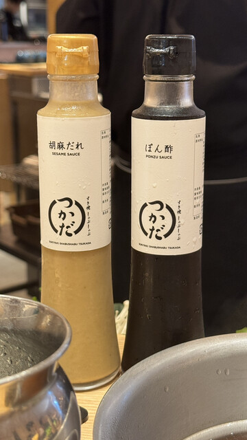我们一家人去享用了餐厅的服务。为了好好体验,我们点了神户牛、松阪牛和A5等级的黑毛和牛牛肉的比拼(每人12000日元)。每个人都有自己的火锅,可以选择喜欢的方式吃,涮涮锅或者寿喜烧,这样就可以按照自己的节奏来吃,真的非常好。我选择了涮涮锅,用了特别调制的醋和芝麻酱,搭配牛肉的口味简直是太棒了。家人则选择了寿喜烧,用的是关西传统的用糖熬制的方式。