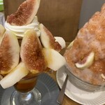 休息时间约在下午3点左右去了这家店,发现满座,前面还有8组人在等待。等了大约1小时30分钟才进店。我点了一份无花果刨冰。蓬松的冰上浇着清新甜美的无花果酱,非常美味。