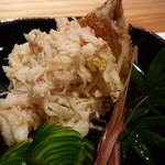 这家餐厅在2015年版的米其林指南中也被评为一星(持续)。我已经来过几次了,但很久没有和另一位朋友一起来了。无论是味道、氛围还是年轻的大厨和女主人的服务态度,都让我想再次光顾这家餐厅。我们点了一口生啤酒(300日元)和搜用(700日元),我的朋友开车,所以选择了无酒精啤酒。开胃菜是金时草的凉拌菜。然后我们点了以下四道菜: - 横和造(寿司) - 富山的白虾 - 莲藕馒头(大约700日元) - 金枪鱼煮(大约2800日元) 所有的菜都是两人份,他们会提供分菜的盘子。横和造的口感丰富,非常美味。白虾带有甜味和粘性,非常搭配搜用酒。我在这里第一次尝到了搜用酒,以后基本上只点这个了。一口生啤酒用来沾食物,非常不错。莲藕馒头是热腾腾的(小心烫口!),馅料调味得恰到好处。金枪鱼煮的鱼肉油腻且口感出色,味道略带清淡,我和朋友一言不发地吃光了。太美味了!接着点了: - 乌龟小锅(大约2500日元) - 虫草花和虫子的天婦罗(大约1500日元) - 味噌腌制的奶酪(约500日元) 由于只有一位大厨,所以有时候会等待一段时间,或者菜品的顺序可能会有些变动,但酒肴很快就会上桌。味噌腌制的奶酪非常顺口,口感丰富,一口生啤酒和搜用酒都很搭。接着上来的是乌龟肉,煮得非常嫩滑,弹牙可口。汤底味道鲜美,让人一口接一口。天婦罗炸得很酥脆,搭配着蘸酱和盐,大块的红虾有着弹牙的口感,带有甜味。最后点了九条葱拌酱、蛤蟆和海胆饭(2500日元),再次点了搜用酒。海胆非常甜美,还有味噌汤供应。这天没有甜点。虽然菜单上通常都会有甜点,但我还是问了一下(这是第二次没有甜点)。作为替代,菜单的最后一项写着“有博若莱新酒”,有客人点了它。两个人共花了大约21000日元。我觉得价格很合理。对我来说,这个餐厅离我的工作地点和家有点远,但因为能够在这里享受美食,我还是会再来的。谢谢款待!
