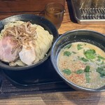 我大约在18:30的时候去了这家店。购买了食品券后,店员立即引导我进入店内。我点了一碗浓郁的鱼介汤沾面!面条很细,但是汤汁很浓稠,所以能很好地与汤混合在一起。非常浓郁且美味(*^o^*)