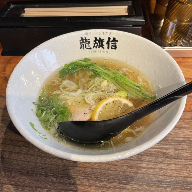【龍旗信RIZE 大阪なんば店】这次我点了盐味肉汤面DX。因为是盐味拉面,所以口感清爽,叉烧非常嫩,味道绝佳。面条也比较细,很好地融入了汤汁,让人尽情享受到盐味。美味可口!